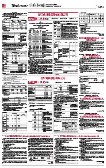 浙江永强集团股份有限公司2015半年度报告摘要 2015-10-29 来源:证券时报网 作者: