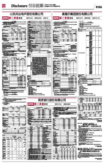 山东共达电声股份有限公司2015第三季度报告 2015-10-29 来源:证券时报网 作者: