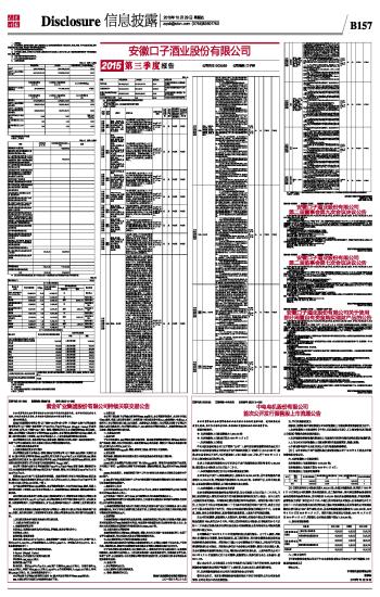 安徽口子酒业股份有限公司2015第三季度报告 2015-10-29 来源:证券时报网 作者: