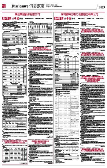 深圳奥特迅电力设备股份有限公司2015第三季度报告