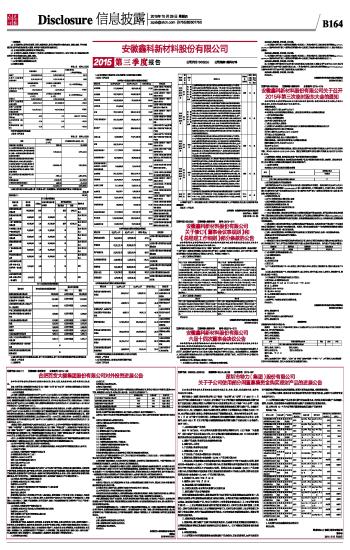 安徽鑫科新材料股份有限公司2015第三季度报告