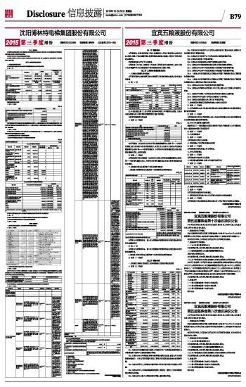 沈阳博林特电梯集团股份有限公司2015第三季度报告