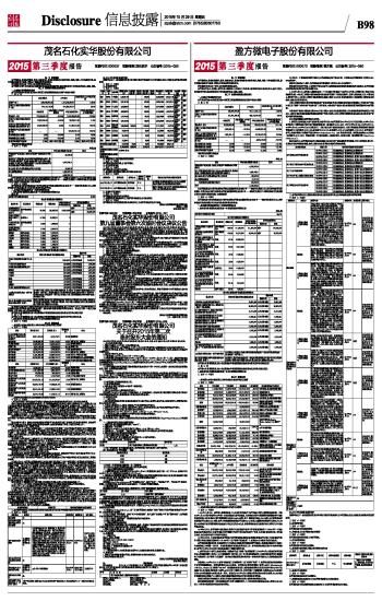 茂名石化实华股份有限公司2015第三季度报告