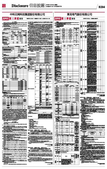 莱克电气股份有限公司2015第三季度报告 2015-10-30 来源:证券时报网 作者: