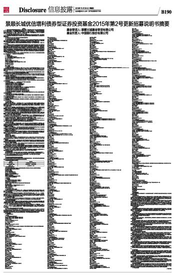 景顺长城优信增利债券型证券投资基金2015年第2号更新招募说明书摘要 2015-10-30 来源:证券时报网 作者: