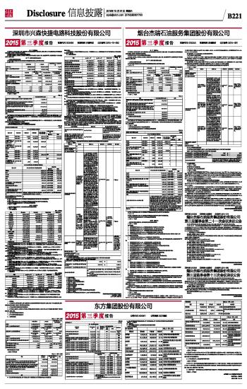 烟台杰瑞石油服务集团股份有限公司2015第三季度报告 2015-10-31 来源:证券时报网 作者: