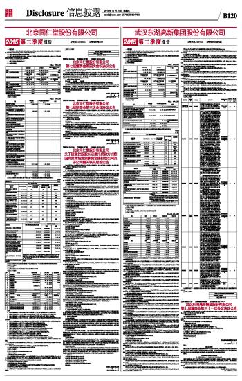 武汉东湖高新集团股份有限公司2015第三季度报告 2015-10-31 来源:证券时报网 作者: