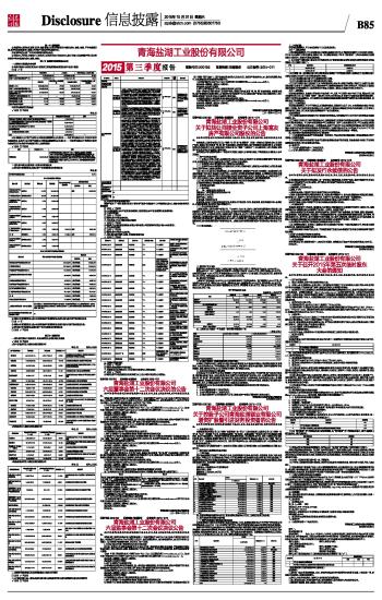 青海盐湖工业股份有限公司2015第三季度报告 2015-10-31 来源:证券时报网 作者: