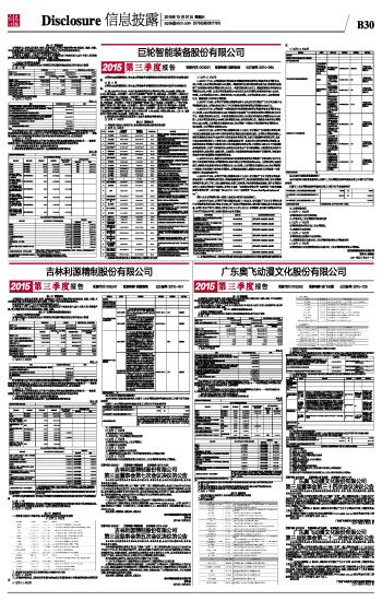 吉林利源精制股份有限公司2015第三季度报告 2015-10-31 来源:证券时报网 作者: