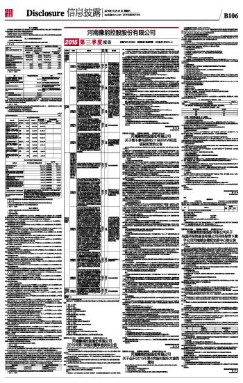 河南豫能控股股份有限公司2015第三季度报告 2015-10-31 来源:证券时报网 作者: