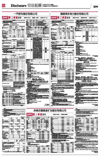 福建闽东电力股份有限公司2015第三季度报告 2015-10-31 来源:证券时报网 作者: