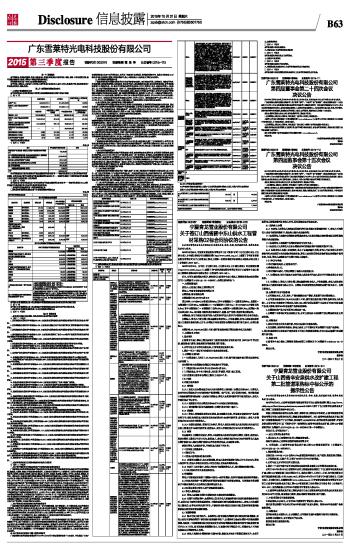 广东雪莱特光电科技股份有限公司2015第三季度报告 2015-10-31 来源:证券时报网 作者: