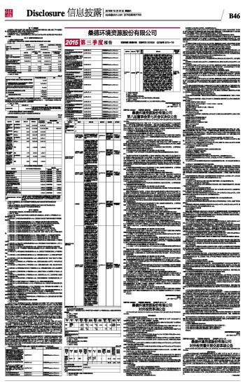 桑德环境资源股份有限公司2015第三季度报告 2015-10-31 来源:证券时报网 作者: