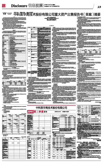 证券代码:600110 证券简称:中科英华 上市地点:上海证券交易所 中科英华高技术股份有限公司重大资产出售报告书(草案)摘要 2015-10-31 来源:证券时报网 作者: