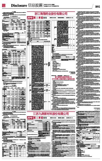 江苏九鼎新材料股份有限公司2015第三季度报告