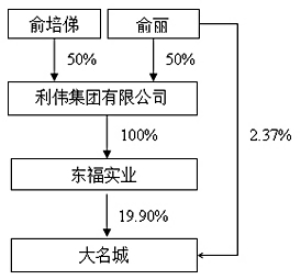 四、公司控股股东及实际控制人情况 本公司控股股东为东福实业,实际控制人为俞培俤先生,报告期内未发生控股权变动。 (一)公司控股股东及实际控制人情况介绍 1、控股股东基本情况 截至2015年9月30日,东福实业持有大名城400,309,993股股份,占发行人股份总数的19.90%股权,为公司控股股东。东福实业的基本情况如下: 公司名称:福州东福实业发展有限公司 企业性质:有限责任公司(台港澳法人独资) 成立日期:1986年1月15日 注册地址:福州市晋安区福马路168号(名城花园28#楼写字楼)名城广场16F 法定代表人:俞丽 注册资本:1,000万美元 经营范围:建造、销售商品房,生产销售建筑材料及相关五金件。 福州东福实业发展有限公司,系经福州市人民政府出具的榕政综[1985]947号《关于设立合作经营东福实业发展有限公司的批复》核准成立,由福州市房地产开发总公司与日本北九州东安贸易有限会社各出资50万元美元组建,2000年度经三次股权转让和增资后,东福实业注册资本增加至1000万美元,香港利伟集团有限公司持有其100%股权。 2014年,东福实业母公司经审计营业收入44.50万元,净利润-232.60万元;经审计合并报表实现营业收入538,034.83万元,归属母公司净利润13,916.07万元,盈利能力良好。 截至2014年12月31日,东福实业母公司主要资产为长期股权投资、长期应收款。其中,长期股权投资为东福实业对控股子公司及联营公司的投资,包括上海大名城企业股份有限公司股权、福州东福投资有限公司100%股权、福州立伟达贸易有限公司100%股权;长期应收款主要为东福实业对大名城子公司统借统还资金支持款项。 2、东福实业主要财务数据和指标 经福建建联会计师事务所有限公司出具的“闽建联CPA[2015]内审字第014号”《审计报告》审计,截至2014年12月31日,合并报表口径东福实业的总资产为21,586,928,676.04元,净资产为6,649,006,987.32元,2014年度的营业收入5,380,348,275.23元,净利润为585,959,625.33元。 3、实际控制人基本情况 利伟集团有限公司为东福实业控股股东,持有东福实业100%股权。俞培俤先生和其女儿俞丽女士为利伟集团有限公司股东,各持有50%的股权。 2013年9月27日,俞丽出具《确认函》,声明如下:“1、截止到本确认函签署之日,本人持有的利伟集团有限公司股权为合法所有,系本人以自有合法资金投资,该股权之上不存在协议安排、委托持股、委托投资、信托或其他方式代持股权等情形,不存在任何被质押或被查封、冻结和其它有争议的情况,也不存在质押或其他任何限制权利的情形。2、截止到本确认函签署之日,本人未参与利伟集团有限公司的实际经营, 本人已将本人对利伟集团有限公司的股权权利(股东收益权、知情权除外)授权俞培俤先生行使。俞培俤先生为利伟集团有限公司的实际控制人。” 鉴于此,俞培俤先生通过利伟集团有限公司控制东福实业,系东福实业实际控制人,系发行人实际控制人。 俞培俤先生:1959年1月生,中国香港籍,香港居民身份证号码为P6118***,担任世界华人华侨(亚洲)青年总商会会长、香港福建社团联会荣誉会长、中国全国工商联房地产商会副会长、福建省政协委员、福州市侨联副主席、福州市企业家联会常务副会长、福州市慈善总会荣誉会长等社会职务。现任公司董事长兼总经理。 (二)公司的股权控制关系结构图 ■ (三)控股股东和实际控制人直接或间接持有发行人的股份是否存在质押或其他有争议的情况 1、东福实业股份质押情况 截至本募集说明书摘要签署日,东福实业持有发行人流通股400,309,993股,占发行人总股本的19.90%,其中用于质押股份总数为30,339.00万股,占发行人总股本的15.08%。 2、俞丽股份质押情况 截至本募集说明书摘要签署日,俞丽持有的公司股份中质押的股份数为47,691,464股,占公司总股本的2.37%。 3、陈华云股份质押情况 截至本募集说明书摘要签署日,陈华云持有的公司股份中质押的股份数为6,822.00万股,占公司总股本的3.39%。 4、俞凯股份质押情况 截至本募集说明书摘要签署日,俞凯持有的公司股份中质押的股份数为3,697.70万股,占公司总股本的1.84%。 五、公司董事、监事、高级管理人员情况 (一)公司董事、监事、高级管理人员基本情况 截至本募集说明书摘要签署日,发行人董事9名、监事3名,非董事高级管理人员6名,基本情况如下表所示: ■ 六、公司主营业务情况 (一)公司主营业务基本情况 报告期内,公司主要从事房地产开发经营,拥有丰富的房地产开发经验,目前业务主要分布在福建、江苏及甘肃等地区。 1、公司房地产业务按产品、地区划分的近三年及一期收入构成情况 报告期内主营业务分产品营业收入主要来源于房产销售及土地开发,具体构成情况如下: 单位:万元 ■ 报告期内主营业务分地区营业收入主要来源于福建、江苏地区,具体构成情况如下: 单位:万元 ■ 2、公司近三年及一期房地产开发销售情况汇总表 ■ 第六节 财务会计信息 本公司2012年、2013年、2014年及2015年1-9月财务报告编制基础为:以公司持续经营假设为基础,根据实际发生的交易事项,按照财政部颁布的最新企业会计准则及其应用指南、解释以及其他相关规定(统称“企业会计准则”)编制。 本公司2012-2014年的财务报告经具有证券业务资格的会计师事务所审计,并均出具了标准无保留意见的审计报告。 投资者如需了解本公司的详细财务状况,请参阅本公