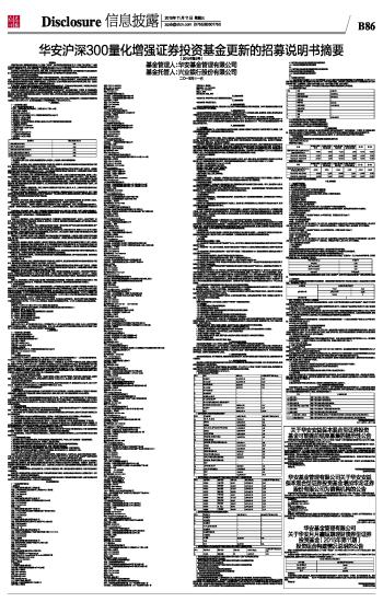 华安沪深300量化增强证券投资基金更新的招募说明书摘要(2015年第2号) 2015-11-11 来源:证券时报网 作者: