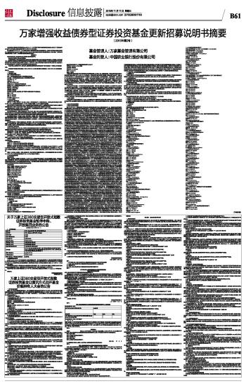 万家增强收益债券型证券投资基金更新招募说明书摘要(2015年第2号) 2015-11-11 来源:证券时报网 作者: