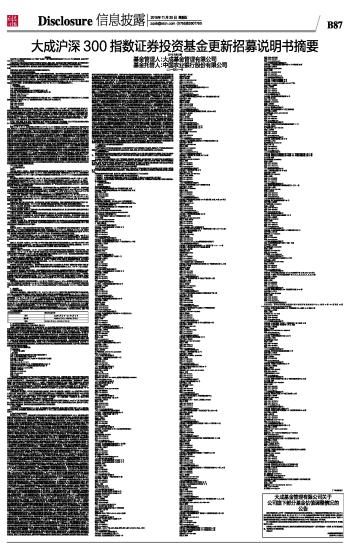 大成沪深300指数证券投资基金更新招募说明书摘要