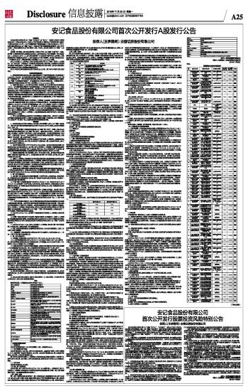 安记食品股份有限公司首次公开发行A股发行公告 2015-11-30 来源:证券时报网 作者: