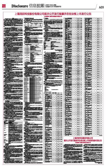 主承销商:国信证券股份有限公司 特别提示 上海润欣科技股份有限公司根据《证券发行与承销管理办法》(2014年修订)(以下简称“《管理办法》”)、《关于进一步推进新股发行体制改革的意见》(以下简称“《意见》”)、《首次公开发行股票时公司股东公开发售股份暂行规定》(2014年修订)、《首次公开发行股票并在创业板上市管理办法》等法规,《首次公开发行股票承销业务规范》(2014年修订)(以下简称“《业务规范》”)、《首次公开发行股票配售细则》(以下简称“《配售细则》”)和《首次公开发行股票网下投资者备案管理细则》(以下简称“《备案管理细则》”)等相关规定首次公开发行股票。本次网下发行采用深交所网下发行电子平台(以下简称“电子平台”)进行,请网下投资者认真阅读本公告及深交所公布的《深圳市场首次公开发行股票网下发行实施细则》(深证上[2014]158号)。本次网上发行通过深交所交易系统进行,请投资者认真阅读本公告及深圳证券交易所公布的《深圳市场首次公开发行股票网上按市值申购实施办法》(深证上[2014]158号)。 请投资者认真阅读本公告及同日刊登的《上海润欣科技股份有限公司首次公开发行股票并在创业板上市投资风险特别公告》,充分了解创业板市场风险,审慎参与本次新股发行。 估值及投资风险提示 新股投资具有较大的市场风险,投资者需要充分了解新股投资风险,仔细研读发行人招股意向书中披露的风险,审慎参与本次发行的估值、报价、投资。 1、按照证监会行业分类指引,上海润欣科技股份有限公司(以下简称“润欣科技”、“发行人”或“公司”)所属行业为I65“软件和信息技术服务业”,截止2015年11月25日(T-4日),中证指数发布的I65“软件和信息技术服务业”最近一个月平均静态市盈率为117.04倍,请投资者决策时参考。本次发行价格6.87元/股对应的发行人2014年扣除非经常性损益前后孰低的净利润摊薄后市盈率为22.97倍,低于中证指数有限公司发布的行业最近一个月平均静态市盈率。 2、根据初步询价结果,经发行人和主承销商协商确定,本次公开发行新股3,000万股,本次发行不设老股转让。按本次发行价格6.87元/股、发行新股3,000万股计算的预计募集资金总额为20,610万元,扣除发行费用约3,580万元后,预计募集资金净额为17,030万元,等于招股说明书披露的发行人本次募投项目拟使用本次募集资金投资额。 3、发行人本次募集资金如果运用不当或短期内业务不能同步增长,将对发行人的盈利水平造成不利影响或存在发行人净资产收益率出现较大幅度下降的风险,由此造成发行人估值水平下调、股价下跌,从而给投资者带来投资损失的风险。 重点提示 1、上海润欣科技股份有限公司首次公开发行新股不超过3,000万股人民币普通股(A股)(以下简称“本次发行”)并在创业板上市的申请已获中国证券监督管理委员会证监许可[2015]1361号文核准。本次发行的股票拟在深交所创业板上市。 2、本次发行采用网下向投资者询价配售(以下简称“网下发行”)与网上按市值申购向投资者定价发行(以下简称“网上发行”)相结合的方式进行。初步询价及网下发行由主承销商国信证券股份有限公司(下称“国信证券”、“主承销商”)负责组织,通过深交所的电子平台实施;网上发行通过深交所交易系统进行。润欣科技的股票代码为300493,该代码同时用于本次发行网上和网下申购。 3、本次发行的初步询价工作已于2015年11月25日(T-4日)完成。参与本次初步询价报价的投资者为148家,剔除5个无效报价后(其中3家投资者管理的部分配售对象的报价有效,因此实际剔除2家),本次初步询价报价的投资者为146家,申购总量为924,650万股,整体申购倍数为513.69倍。发行人和主承销商根据网下投资者的报价情况,经过协商一致决定将报价为6.87元且投资者申购总量小于1,800万股的报价;报价为6.87元、投资者的申购总量为1,800万股且报价时间晚于11月24日09:31:15.477(含)的报价作为最高报价部分予以剔除,共计剔除54家投资者的报价,对应剔除的申购量为93,700万股,占本次初步询价申购总量的10.13%。剔除部分不得参与网下申购。 4、发行人和主承销商根据剔除最高报价部分后的剩余报价及申购情况,综合参考发行人基本面、所处行业、可比公司估值水平、市场情况、募集资金需求及承销风险等因素,协商确定本次发行价格为人民币6.87元/股。此发行价格对应的市盈率为: (1)17.23倍(每股收益按照经会计师事务所遵照中国会计准则审计的扣除非经常性损益前后孰低的2014年净利润除以本次公开发行前的总股数计算); (2)22.97倍(每股收益按照经会计师事务所遵照中国会计准则审计的扣除非经常性损益前后孰低的2014年净利润除以本次公开发行后的总股数计算)。 5、剔除最高报价部分后,初步询价中报价不低于本次发行价格的报价为有效报价,根据确定有效报价对象数量的规则,发行人和主承销商确定本次有效报价的投资者数量为92家,确定入围的配售对象数量为480个,有效申购数量之和为830,950万股,对应的有效申购倍数为461.64倍。 6、发行人根据发行价格和募投项目所需资金量,确定本次发行的新股数量为3,000万股。本次网下初始发行数量为1,800万股,为本次发行数量的60%;网上初始发行数量为1,200万股,为本次发行数量的40%。 7、本次发行的网下、网上申购