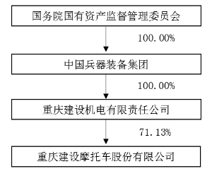 上市公司名称:重庆建设摩托车股份有限公司 股票简称:建摩B 股票代码:200054 股票上市地点:深圳证券交易所 收购人名称:重庆建设机电有限责任公司 住所:重庆市巴南区建设大道1号2幢 通讯地址:重庆市巴南区建设大道1号 联系电话:02366295333 签署日期:2015年12月14日 收购人声明 一、本报告书摘要依据《中华人民共和国证券法》、《上市公司收购管理办法》、《公开发行证券的公司信息披露内容与格式准则第16 号——上市公司收购报告书》等相关法律法规编写。 二、依据《中华人民共和国证券法》、《上市公司收购管理办法》的规定,本报告书已全面披露收购人在重庆建设摩托车股份有限公司拥有权益的股份。截至本报告书签署之日,除本报告书披露的持股信息外,收购人未通过任何其他方式在重庆建设摩托车股份有限公司拥有权益。 三、收购人签署本报告书已获得必要的授权和批准,其履行亦不违反收购人公司章程或内部规则中的任何条款,或与之相冲突。 四、本次收购需获得国务院国有资产监督管理委员会审核批准,以及中国证券监督管理委员会豁免收购人要约收购义务的批准。 五、本次收购是根据本报告书所载明的资料进行的。除收购人和所聘请的专业机构外,没有委托或授权任何其他人提供未在本报告书中列载的信息和对本报告书做出任何解释或者说明。 第一节 释义 本报告中,除非文意另有所指,下列简称和术语具有如下涵义: ■ 注:本报告中部分合计数与各单项数据之和在尾数上存在差异,这些差异是由于四舍五入原因所致。 第二节 收购人介绍 一、收购人基本情况 ■ 二、收购人的股权结构及实际控制人 (一)股权结构 截至本报告书签署日,建设机电的股份结构如下图所示: ■ 建设机电的控股股东为中国兵器装备集团公司,实际控制人为国务院国有资产监督管理委员会,国务院国有资产监督管理委员会根据国务院授权代表国家履行出资人职能。 (二)兵装集团控制的其他企业 截止本报告书签署日,兵装集团拥有全资子企业44家,控股子公司11家,基本情况如下: 1、全资子企业 ■ ■ 2、控股子公司 ■ ■ 三、收购人主营业务及财务情况说明 (一)业务情况 建设机电成立于2015年8月28日,由上市公司摩托车业务相关的资产和负债出资设立而成。2015年10月27日,建设股份召开第七届董事会第八次会议,审议通过上市公司将建设机电100%股权出售给兵装集团的方案。2015年11月17日,上述事项经上市公司2015年第一次临时股东大会审议通过。截止本报告书签署日,建设机电100%股权已过户至兵装集团名下。 截止本报告书签署日,建设机电主要从事摩托车及摩托车发动机的生产和销售。 (二)下属公司情况 ■ (二)最近三年财务状况的简要说明 根据《公开发行证券的公司信息披露内容与格式准则第16号——上市公司收购报告书》第四十条第三款规定:如果该法人或其他组织成立不足一年或者是专为本次收购而设立的,则应当披露其实际控制人或者控股公司的财务资料。 建设机电成立于2015年8月28日成立,截至本报告书签署之日不足一年,建设机电控股股东为兵装集团,其最近三年相关财务资料信息如下: ■ 四、收购人最近五年是否受到处罚的情况说明 截至本报告签署之日,建设机电没有受过与证券市场有关的行政处罚、刑事处罚或者与经济纠纷有关的重大民事诉讼或者仲裁。 五、收购人董事、监事、高级管理人员情况说明 截至本报告书签署日,建设机电董事、监事及高级管理人员的基本情况如下: ■ 截至本报告书签署日,上述人员最近五年内未受到与证券市场有关的行政处罚、刑事处罚,也未涉及与经济纠纷有关的重大民事诉讼或者仲裁 六、收购人持有、控制其他上市公司5%以上的发行在外的股份情况 至本报告书签署之日,建设机电不存在拥有权益的股份达到或超过5%的上市公司的情况。 第三节 收购决定及收购目的 一、收购目的 本次收购行为使建设股份成为建设机电的控股子公司,有利于建设股份在原有基础上进一步加大改革管理力度、理顺管理关系,做强做大汽车空调压缩机业务;同时也有利于改善建设机电资产负债结构,深化企业改革发展战略,实现企业可持续发展。 二、未来12个月内继续增持上市公司股份或处置已拥有权益的股份的计划 截至本报告书签署之日,建设机电暂无在未来12个月内对建设股份继续增持股份或处置其已拥有权益股份的计划。如建设机电作出增持或减持建设股份股份的决定,将按照相关法律、法规的要求进行披露。 三、本次收购所履行的相关程序 (一)本次收购已经履行的审批程序 1、2015年7月23日,兵装集团召开第93次党政联席会,审议通过了本次无偿划转方案。 2、2015年12月9日,收购人召开董事会,审议通过了受让兵装集团无偿划转上市公司股份的议案。 (二)本次收购尚待履行的审批程序 1、本次国有股权无偿划转尚需取得国务院国资委核准; 2、中国证监会豁免建设机电要约收购义务。 第四节 收购方式 一、收购人收购前后持有建设股份的股份数量和比例 本次国有股权无偿划转完成前,建设机电未持有建设股份的股份。 本次国有股权无偿划转完成后,建设机电将持有建设股份84,906,250股,占已发行股本的 71.13%,从而成为建设股份的控股股东。 根据《收购办法》有关规定,本次收购触发了要约收购义务,需要向