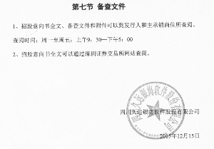 四川久远银海软件股份有限公司首次公开发行股票招股意向书摘要 2015-12-16 来源:证券时报网 作者: