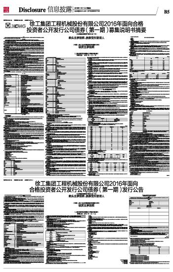 证券代码:000425 证券简称:徐工机械 公告编号:2016-2 徐工集团工程机械股份有限公司2016年面向合格投资者公开发行公司债券(第一期)发行公告(江苏省徐州经济开发区工业一区) 2016-01-07 来源:证券时报网 作者: