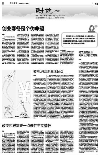 临近腊月,有人计划辞职谋新职,有人筹资想创业,打工还是创业?哪个更有发展前景,这个似乎是很多人反复衡量和犹豫的问题。说起创业环境和自身资源,虽然是老话题,可是想聊的东西却很多。