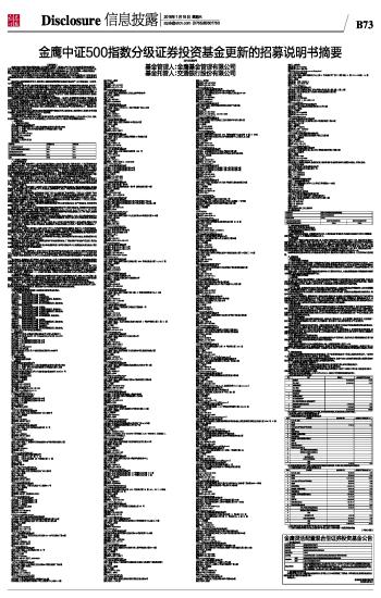 金鹰中证500指数分级证券投资基金更新的招募说明书摘要2015年第2号 2016-01-16 来源:证券时报网 作者: