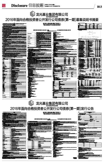 | 龙光基业集团有限公司2016年面向合格投资者公开发行公司债券(第一期)募集说明书摘要 | 2016-01-18 | |