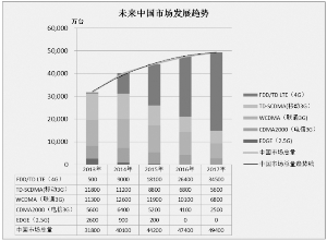 (上接B6版) C、智能手机行业未来发展趋势 ①全球市场 根据目前的市场情况分析,智能手机总量将在未来的5年内持续增长,但随着竞争加剧和市场容量基数增大,增长速度将会减缓,产品销售逐渐过渡到以产品升级换代为主的销售需求上。根据IHS的预测,2015年比2014年有14%的增长,至2017年全球智能手机市场将达到17.2亿台,较上一年度仍将会有9%的增长率。 ■ 数据来源:IHS ②中国市场 在中国市场内,智能手机未来几年预计仍将保持持续增长趋势:根据IHS的预测,2015年中国市场总体增长率约为10%,2017年中国智能手机市场将达到4.94亿台,约占全球市场的28.72%。 ■ 数据来源:IHS D、世界智能手机行业产业链在中国 随着行业的持续发展,中国已形成了从智能手机研发设计至生产制造的完整产业链,包括整机设计、原材料制造(电子物料、结构物料等)、手机加工组装等在内的各环节都在全世界具有较强的竞争力。中国生产的智能手机具有物美价廉、技术先进的优势,这使得中国手机企业成为了面向全球手机用户的设计、生产制造者,在全球市场中占有一定的地位。 目前除了国内市场外,中国手机企业在东南亚、印度、巴基斯坦、非洲、南美洲等发展中国家拥有较高的市场份额和竞争力,同时发达国家的智能手机产品也大多由中国企业生产代工。 根据行业预测数据,2015年后,虽然全球和中国的智能手机市场增长率较之前有所放缓,但总量仍将持续增长。更为重要的是,由于中国在全球手机产业链中的较大优势,中国手机行业的相关企业在全球市场中面临广阔的市场空间。 (4)手机行业产业链分析 A、行业上下游情况 手机行业产业链的上游为手机元器件生产厂商、手机操作系统厂商、手机设计公司和电子制造服务商(EMS),分别为手机终端厂商提供手机所需的各种元器件、手机操作系统、手机软硬件、外观、结构等设计方案,以及为手机厂商提供手机主板的贴片与整机的组装;产业链的下游主要为各类手机经销商。 ①手机元器件厂商 a、行业介绍 手机元器件主要可以分为电子元器件、机电元器件和结构器件三大类:电子元器件是指手机PCBA上的贴片物料,包括主芯片、存储器、音频功放、电阻、电容、连接器等;机电元器件是指既与电子相关又与结构相关的物料,包括屏、摄像头、喇叭、马达、FPC等;结构器件是指与尺寸、结构、外观等相关的物料,包括外壳、按键、镜片等。 手机的主芯片组包括基带芯片、射频芯片、电源管理芯片等,是手机电子元器件的最主要组成部分,是手机的核心器件。 芯片设计和制造厂商处于产业链的最上端,主要厂商主要包括高通(Qualcomm)、三星(Samsung)、英伟达(NVIDIA)、联发科技(MTK)、德州仪器(TI)、ST-Ericsson、以及展讯(Spreadtrum Communications)等公司。 b、代表性厂商介绍 目前,高通和联发科技是最具代表性的手机芯片厂商,这两家公司分别在3G手机芯片和2G手机芯片市场占据了主导地位。 高通是一家拥有众多CDMA通信专利技术的半导体公司,是全球拥有最主要3G专利(包括CDMA2000、WCDMA)的科技公司,与多家客户签署了《技术授权协议》。 高通的主要业务包括技术授权业务以及芯片业务等,由于高通在3G技术领域布局早,研发投入大,因此其3G芯片产品技术领先,产品线最为全面,目前在3G芯片市场占据主导地位。 联发科技全称为联发科技股份有限公司。该公司早期主要以生产DVD、CDROM等存储器的IC芯片闻名。2000年后,联发科技推出了手机芯片,大幅降低了芯片成本,并通过“Turnkey solution”的模式,成为国内手机厂家合作最多的手机芯片公司。目前,联发科技的2G手机芯片出货量位居世界第一,其客户除国产手机之外,还包括摩托罗拉、LG、Sharp等在内的国际手机厂商。 联发科技在手机芯片行业取得了巨大成功的原因首先是其大幅降低了手机芯片成本,有力的推动了全球手机行业的发展。除成本低的最大优势外,联发科技芯片还具有省电性能好、稳定性强等特点,方便研发能力较强的厂商结合自身产品的设计拓展芯片功能,如提高电源管理能力、普通芯片实现全键盘控制等。 联发科技的成功还因其创造性的推出“Turnkey solution”,即将手机芯片和手机软件平台预先整合到一起,方便手机厂商直接进行产品设计,不必在手机基本通信功能和操作平台的研发与工程调试上花费太多资源,对于规模较小、研发能力较弱的中小型厂商而言,这大大降低了研发、生产难度,对国产手机行业的发展壮大起到了重要的作用。 ②手机操作系统厂商 手机操作系统是管理手机硬件与软件资源的程序,是手机系统的内核与基石,可以使手机操作简单化,功能丰富化,增强手机的实用性。 手机操作系统一般可分为两类:第一类是非开放的主要用于功能手机的各种嵌入式实时操作系统,也称封闭式操作系统;第二类是可支持第三方应用开发的主要用于智能手机的开放式操作系统。封闭式操作系统一般具有规模小、功能少、不开放的特点。而开放性式操作系统可以安装更多的应用程序,从而使智能手机的功能可以得到扩充,代表了手机的发展方向。 随着3G和智能手机的技术储备日臻完备,市场认同度越来越高,手机操作系统的重要性日益显现。目前,智能手机操作系统厂商主要包括谷歌、苹果、微软和RIM等国际公司,它们推出的操作系统分别为Android、iPhone OS、Windows Mobile和RIM OS等。 ③手机设
