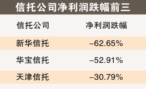 净利润方面,华宝信托、天津信托跌幅明显。此外,一直表现较好的中诚信托,也没能度过“寒冬”。 中诚信托2014年年报显示,在信托资产运用方面,公司偏好实业和证券市场领域,占比分别为29.88%和25.93%。 “从中诚信托的业务结构来看,应该受到去年证券市场大幅波动的影响,这也是致使该公司收入和净利润下滑的主要因素一。”上述不愿具名的中型信托公司研究员称。 本版导读: