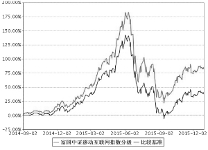 ■ §1 重要提示 ■ §2 基金产品概况 ■ §3 主要财务指标和基金净值表现 3.1 主要财务指标 单位: 人民币元 ■ 注:上述基金业绩指标不包括持有人认购或交易基金的各项费用(例如,开放式基金的申购赎回费、基金转换费等),计入费用后实际收益水平要低于所列数字。本期已实现收益指基金本期利息收入、投资收益、其他收入(不含公允价值变动收益)扣除相关费用后的余额,本期利润为本期已实现收益加上本期公允价值变动收益。 3.2 基金净值表现 3.2.1 本报告期基金份额净值增长率及其与同期业绩比较基准收益率的比较 ■ 注:过去三个月指2015年10月1日-2015年12月31日 3.2.2 自基金合同生效以来基金累计份额净值增长率变动及其与同期业绩比较基准收益率变动的比较 ■ 注:1、截止日期为2015年12月31日。 2、本基金于2014年9月2日成立,建仓期6个月,即从2014年9月2日起至2015年3月1日,建仓期结束时各项资产配置比例均符合基金合同约定。 3.3 其他指标 ■ §4 管理人报告 4.1 基金经理(或基金经理小组)简介 ■ 注:1、上述任职日期为根据公司确定的聘任日期,离任日期为根据公司确定的解聘日期;首任基金经理任职日期为基金合同生效日。 2、证券从业的涵义遵从行业协会《证券业从业人员资格管理办法》的相关规定。 4.2 报告期内本基金运作遵规守信情况说明 本报告期,富国基金管理有限公司作为富国中证移动互联网指数分级证券投资基金的管理人严格按照《中华人民共和国证券投资基金法》、《中华人民共和国证券法》、《富国中证移动互联网指数分级证券投资基金基金合同》以及其它有关法律法规的规定,本着诚实信用、勤勉尽责的原则管理和运用基金资产,以尽可能减少和分散投资风险、确保基金资产的安全并谋求基金资产长期稳定的增长为目标,基金投资组合符合有关法规及基金合同的规定。 4.3 公平交易专项说明 4.3.1 公平交易制度的执行情况 本基金管理人根据相关法规要求,结合实际情况,制定了内部的《公平交易管理办法》,对证券的一级市场申购、二级市场交易相关的研究分析、投资决策、授权、交易执行、业绩评估等投资管理环节,实行事前控制、事中监控、事后评估及反馈的流程化管理。在制度、操作层面确保各组合享有同等信息知情权、均等交易机会,并保持各组合的独立投资决策权。 事前控制主要包括:1、一级市场,通过标准化的办公流程,对关联方审核、价格公允性判断及证券公平分配等相关环节进行控制;2、二级市场,通过交易系统的投资备选库、交易对手库及授权管理,对投资标的、交易对手和操作权限进行自动化控制。 事中监控主要包括组合间相同投资标的的交易方向、市场冲击的控制,银行间市场交易价格的公允性评估等。1、将主动投资组合的同日反向交易列为限制行为,非经特别控制流程审核同意,不得进行;对于同日同向交易,通过交易系统对组合间的交易公平性进行自动化处理。2、同一基金经理管理的不同组合,对同一投资标的采用相同投资策略的,必须通过交易系统采取同时、同价下达投资指令,确保公平对待其所管理的组合。 事后评估及反馈主要包括组合间同一投资标的的临近交易日的同向交易和反向交易的合理性分析评估,以及不同时间窗口下(1日、3日、5日)的季度公平性交易分析评估等。1、通过公平性交易的事后分析评估系统,对涉及公平性交易的投资行为进行分析评估,分析对象涵盖公募、年金、社保及专户产品,并重点分析同类组合(股票型、混合型、债券型)间、不同产品间以及同一基金经理管理不同组合间的交易行为,若发现异常交易行为,监察稽核部视情况要求相关当事人做出合理性解释,并按法规要求上报辖区监管机构。2、季度公平性交易分析报告按规定经基金经理或投资经理签字,并经督察长、总经理审阅签字后,归档保存,以备后查。 本报告期内公司旗下基金严格遵守公司的相关公平交易制度,未出现违反公平交易制度的情况。 4.3.2 异常交易行为的专项说明 本报告期内未发现异常交易行为。 公司旗下管理的各投资组合在交易所公开竞价同日反向交易的控制方面,报告期内本组合与其他投资组合之间未出现成交较少的单边交易量超过该证券当日成交量5%的情况。 4.4 报告期内基金的投资策略和运作分析 4季度以来,随着两融余额的快速下降和场外配资的清理进入尾声,市场经过充分调整之后迎来一些积极变化,保险公司的频频举牌带动市场逐步震荡反弹。从结构来看,代表未来经济转型创新方向的创业板反弹力度较大,4季度创业板指数上涨30.32%,而受经济下行压力的影响,银行、资源品等行业占比较高的上证综指反弹幅度相对较小,4季度上证综指上涨15.93%。总体来看,经过3季度的大幅波动后,市场的资金供需、投资者信心、估值体系、结构主线都在寻找新的平衡。目前来看,4季度的市场表现更多是一种超跌反弹,市场尚未出现较为清晰持续的投资主线,需继续观察市场的重建。4季度末,随着美联储加息,人民币持续贬值,以及1月8日大非解禁的临近,投资者对资金面表现出较大担忧,市场再次出现调整。总体来看,中证移动互联指数4季度上涨33.59%。 在投资管理上,本基金采取完全复制的被动式指数基金管理策略,采用量化和人工管理相结合的方法,处理基金日常运作中的大额申购和赎回等