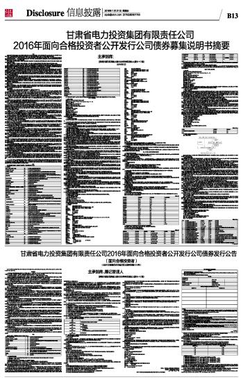 甘肃省电力投资集团有限责任公司2016年面向合格投资者公开发行公司债券募集说明书摘要 2016-01-21 来源:证券时报网 作者: