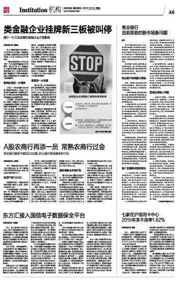 类金融企业挂牌新三板被叫停属于一行三会监管的金融企业不受影响 2016-01-21 来源:证券时报网 作者:赵春燕