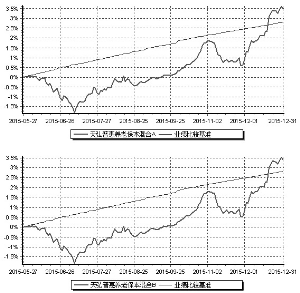 基金管理人:天弘基金管理有限公司 基金托管人:平安银行股份有限公司 报告送出日期:2016年01月22日 §1 重要提示 ■ §2 基金产品概况 ■ §3 主要财务指标和基金净值表现 3.1 主要财务指标 单位:人民币元 ■ 注:1、本期已实现收益指基金本期利息收入、投资收益、其他收入(不含公允价值变动收益)扣除相关费用后的余额,本期利润为本期已实现收益加上本期公允价值变动收益。 2、所述基金业绩指标不包括持有人认购或交易基金的各项费用(例如,开放式基金的申购赎回费等),计入费用后实际收益水平要低于所列数字。 3.2 基金净值表现 3.2.1 本报告期基金份额净值增长率及其与同期业绩比较基准收益率的比较 天弘普惠养老保本混合A ■ 天弘普惠养老保本混合B ■ 注:1、本基金合同于2015年5月27日生效,本基金合同生效起至披露时点不满1年。 2、按照本基金合同的约定,基金管理人应当自基金合同生效之日起6个月内使基金的投资组合比例符合基金合同的有关约定。本基金的建仓期为2015年5月27日至2015年11月26日,建仓期结束时,各项资产配置比例均符合基金合同的约定。 3、本报告期内,本基金的各项投资比例达到基金合同约定的各项比例要求。 3.2.2 自基金合同生效以来基金累计净值增长率变动及其与同期业绩比较基准收益率变动的比较 ■ §4 管理人报告 4.1 基金经理(或基金经理小组)简介 ■ 注:1、上述任职日期为基金合同生效日。 2、证券从业的含义遵从行业协会《证券业从业人员资格管理办法》的相关规定。 4.2 管理人对报告期内本基金运作遵规守信情况的说明 本基金按照国家法律法规及基金合同的相关约定进行操作,不存在违法违规及未履行基金合同承诺的情况。 4.3 公平交易专项说明 4.3.1 公平交易制度的执行情况 公平交易的执行情况包括:建立统一的研究平台和公共信息平台,保证各组合得到公平的投资资讯;公平对待不同投资组合,禁止各投资组合之间进行以利益输送为目的的投资交易活动;在保证各投资组合投资决策相对独立性的同时,严格执行授权审批程序;实行集中交易制度和公平交易分配制度;建立不同投资组合投资信息的管理及保密制度,保证不同投资组合经理之间的重大非公开投资信息的相互隔离;加强对投资交易行为的监察稽核力度,建立有效的异常交易行为日常监控和分析评估体系等。 报告期内,公司公平交易程序运作良好,未出现异常情况;场外、网下业务公平交易制度执行情况良好,未出现异常情况。 公司对旗下各投资组合的交易行为进行监控和分析,对各投资组合不同时间窗口(1日、3日、5日)内的同向交易的溢价金额与溢价率进行了T检验,未发现违反公平交易原则的异常交易。 本报告期内,未出现违反公平交易制度的情况,公司旗下各基金不存在因非公平交易等导致的利益输送行为,公平交易制度的整体执行情况良好。 4.3.2 异常交易行为的专项说明 为规范投资行为,公平对待投资组合,制定《异常交易监控和报告办法》对可能显著影响市场价格、可能导致不公平交易、可能涉嫌利益输送等交易行为异常和交易价格异常的情形进行界定,拟定相应的监控、分析和防控措施。 本报告期内,严格控制同一基金或不同基金组合之间的同日反向交易,严格禁止可能导致不公平交易和利益输送的同日反向交易;针对非公开发行股票申购、以公司名义进行的债券一级市场申购的申购方案和分配过程进行审核和监控,保证分配结果符合公平交易原则。未发现本基金存在异常交易行为。 本基金本报告期内未发生同一基金或不同基金组合之间在同一交易日内进行反向交易及其他可能导致不公平交易和利益输送的异常交易。 4.4 报告期内基金的投资策略和运作分析 2015年四季度,经济基本面整体延续疲弱,虽然后半段经济有一定企稳迹象,但是弱势格局短期内无法根本性扭转。以基建投资扩张为核心的经济托底政策,无法充分对冲内需快速回落的冲击,只能在一定程度上延缓经济增速回落的速度,无法扭转整体的趋势。政策方面,经济下行压力大以及外汇流出加剧等因素使得货币政策依然处于宽松途中,央行于四季度继续进行了降准降息等宽松操作,呵护二季度以来流动性的宽松局面。资金面方面,得益于央行构建利率走廊的政策意图,资金利率稳定性显著提升。在基本面、政策面和资金面三方配合,以及资产荒格局下增量资金的涌入,债券收益率出现显著下行,尤其是利率债收益率一举突破前期低点,走出了一轮牛市。 本基金在报告期内,以债券仓位为主,同时在权益市场也加强了股票投资,重点投向了消费品、天然气、工业4.0、环保、TMT等行业,取得了一定的正收益。 4.5 报告期内基金的业绩表现 截至2015年12月31日,普惠养老保本混合A基金份额净值为1.0351元,普惠养老保本混合B基金份额净值为1.0342元。报告期内份额净值增长率普惠养老保本混合A为3.29%,普惠养老保本混合B为3.25%,同期业绩比较基准增长率为1.04%。 4.6 报告期内基金持有人数或基金资产净值预警说明 本报告期内本基金管理人无应说明预警信息。 4.7 管理人对宏观经济、证券市场及行业走势的简要展望 展望2016年一季度,基本面方面,虽然前期稳增长政策的累积效应逐渐显现,对经济有一定支撑作用,但是经济下行压力仍存,且中央有意推进供给侧结构性改革,去产能过程将对