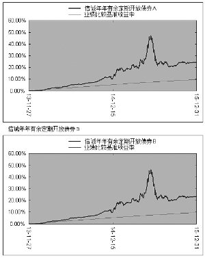 基金管理人:信诚基金管理有限公司 基金托管人:中国银行股份有限公司 报告送出日期:2016年1月22日 §1 重要提示 基金管理人的董事会及董事保证本报告所载资料不存在虚假记载、误导性陈述或重大遗漏,并对其内容的真实性、准确性和完整性承担个别及连带责任。 基金托管人中国银行股份有限公司根据本基金合同规定,于2016年1月21日复核了本报告中的财务指标、净值表现和投资组合报告等内容,保证复核内容不存在虚假记载、误导性陈述或者重大遗漏。 基金管理人承诺以诚实信用、勤勉尽责的原则管理和运用基金资产,但不保证基金一定盈利。 基金的过往业绩并不代表其未来表现。投资有风险,投资者在作出投资决策前应仔细阅读本基金的招募说明书。 本报告中财务资料未经审计。 本报告期自2015年10月1日起至12月31日止。 §2 基金产品概况 ■ §3 主要财务指标和基金净值表现 3.1 主要财务指标 单位:人民币元 ■ 注:1、上述基金业绩指标不包括持有人认购或交易基金的各项费用,计入费用后实际收益水平要低于所列数字。 2、本期已实现收益指基金本期利息收入、投资收益、其他收入(不含公允价值变动收益)扣除相关费用后的余额,本期利润为本期已实现收益加上本期公允价值变动收益。 3.2 基金净值表现 3.2.1 本报告期基金份额净值增长率及其与同期业绩比较基准收益率的比较 信诚年年有余定期开放债券A ■ 信诚年年有余定期开放债券B ■ 3.2.2 自基金合同生效以来基金累计净值增长率变动及其与同期业绩比较基准收益率变动的比较 信诚年年有余定期开放债券A ■ 注:本基金建仓期自2013年11月27日至2014年5月27日,建仓期结束时资产配置比例符合本基金基金合同规定。 §4 管理人报告 4.1 基金经理(或基金经理小组)简介 ■ 注:1.上述任职日期、离任日期根据本基金管理人对外披露的任免日期填写。 2.证券从业的含义遵从行业协会《证券业从业人员资格管理办法》的相关规定。 4.2 管理人对报告期内本基金运作遵规守信情况的说明 在本报告期内,本基金管理人严格按照《证券投资基金法》和其他相关法律法规的规定以及《信诚年年有余定期开放债券型证券投资基金基金合同》、《信诚年年有余定期开放债券型证券投资基金招募说明书》的约定,本着诚实信用、勤勉尽职的原则管理和运用基金财产。本基金管理人通过不断完善法人治理结构和内部控制制度,加强内部管理,规范基金运作。本报告期内,基金运作合法合规,没有发生损害基金份额持有人利益的行为。 4.3 公平交易专项说明 4.3.1 公平交易制度的执行情况 根据中国证监会颁布的《证券投资基金管理公司公平交易制度指导意见》,以及公司拟定的《信诚基金公平交易管理制度》,公司采取了一系列的行动实际落实公平交易管理的各项要求。各部门在公平交易执行中各司其职,投资研究前端不断完善研究方法和投资决策流程,确保各投资组合享有公平的投资决策机会,建立公平交易的制度环境;交易环节加强交易执行的内部控制,利用恒生交易系统公平交易相关程序,及其它的流程控制,确保不同基金在一、二级市场对同一证券交易时的公平;公司同时不断完善和改进公平交易分析系统,在事后加以了严格的行为监控,分析评估以及报告与信息披露。当期公司整体公平交易制度执行情况良好,未发现有违背公平交易的相关情况。 4.3.2 异常交易行为的专项说明 本报告期内,未发现本基金与其它投资组合之间有可能导致不公平交易和利益输送的异常交易。报告期内,未出现参与交易所公开竞价同日反向交易成交较少的单边交易量超过该证券当日成交量5%的交易(完全复制的指数基金除外)。 4.4 报告期内基金的投资策略和运作分析 四季度经济增长较弱,投资、出口延续放缓态势,消费增长平稳,消费物价指数维持较低水平。央行继续实施稳健的货币政策,运用新型数量调节工具,保持流动性适度增长,流动性宽裕,央行7天逆回购投放资金利率为2.25%,比上季降低10BP。四季度,债市资金面宽松,货币市场利率维持低位,债券市场平稳上涨,中证综合债指数上涨2.5%。 四季度,本基金保持适度杠杆水平,配置较高评级的信用债包括城投债和公司债,基金净值保持平稳增长。12月初本基金开放,机构申购本基金较为踊跃,资金流入较多,截至季末,债券资产仍未配置到位,未来将积极配置收益较高且信用风险较低的公司债。本基金特别注重信用风险管理,通过严格的内部信用评级体系,甄别信用风险,规避负债率高、经营性现金流持续为负和经营亏损的公司发行的债券,以及信用风险较为突出的行业的债券,如房地产、钢铁、电解铝、煤化工等行业的债券。 4.5 报告期内基金的业绩表现 本报告期内,本基金A、B份额净值增长率分别为2.39%和2.24%,同期业绩比较基准收益率为0.90%,基金超越业绩比较基准分别为1.49%和1.34%。 4.6 报告期内基金持有人数或基金资产净值预警说明 本报告期内,本基金未出现连续20个工作日基金资产净值低于五千万元(基金份额持有人数量不满两百人)的情形。 §5 投资组合报告 5.1 报告期末基金资产组合情况 ■ 5.2 报告期末按行业分类的股票投资组合 ■ 5.3 报告期末按公允价值占基金资产净值比例大小排序的前十名股票投资明细 ■ 注:本基金本报告期末仅持有上述1只股票。 5.4 报告期末按债