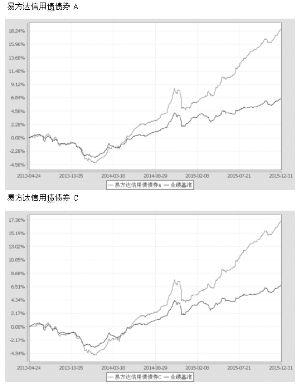 基金管理人:易方达基金管理有限公司 基金托管人:中国工商银行股份有限公司 报告送出日期:二〇一六年一月二十二日 §1 重要提示 基金管理人的董事会及董事保证本报告所载资料不存在虚假记载、误导性陈述或重大遗漏,并对其内容的真实性、准确性和完整性承担个别及连带责任。 基金托管人中国工商银行股份有限公司根据本基金合同规定,于2016年1月19日复核了本报告中的财务指标、净值表现和投资组合报告等内容,保证复核内容不存在虚假记载、误导性陈述或者重大遗漏。 基金管理人承诺以诚实信用、勤勉尽责的原则管理和运用基金资产,但不保证基金一定盈利。 基金的过往业绩并不代表其未来表现。投资有风险,投资者在作出投资决策前应仔细阅读本基金的招募说明书。 本报告中财务资料未经审计。 本报告期自2015年10月1日起至12月31日止。 §2 基金产品概况 ■ §3 主要财务指标和基金净值表现 3.1 主要财务指标 单位:人民币元 ■ 注:1.所述基金业绩指标不包括持有人认购或交易基金的各项费用,计入费用后实际收益水平要低于所列数字。 2.本期已实现收益指基金本期利息收入、投资收益、其他收入(不含公允价值变动收益)扣除相关费用后的余额,本期利润为本期已实现收益加上本期公允价值变动收益。 3.2 基金净值表现 3.2.1本报告期基金份额净值增长率及其与同期业绩比较基准收益率的比较 易方达信用债债券A ■ 易方达信用债债券C ■ 3.2.2 自基金合同生效以来基金累计净值增长率变动及其与同期业绩比较基准收益率变动的比较 易方达信用债债券型证券投资基金 累计净值增长率与业绩比较基准收益率的历史走势对比图 (2013年4月24日至2015年12月31日) ■ 注:自基金合同生效至报告期末,A类基金份额净值增长率为18.50%,C类基金份额净值增长率为17.10%,同期业绩比较基准收益率为6.63%。 §4 管理人报告 4.1 基金经理(或基金经理小组)简介 ■ 注:1.此处的“离任日期”为公告确定的解聘日期,胡剑的“任职日期”为基金合同生效之日,纪玲云的“任职日期”为公告确定的聘任日期。 2.证券从业的含义遵从行业协会《证券业从业人员资格管理办法》的相关规定。 4.2管理人对报告期内本基金运作遵规守信情况的说明 本报告期内,本基金管理人严格遵守《证券投资基金法》等有关法律法规及基金合同、基金招募说明书等有关基金法律文件的规定,以取信于市场、取信于社会投资公众为宗旨,本着诚实信用、勤勉尽责的原则管理和运用基金资产,在控制风险的前提下,为基金份额持有人谋求最大利益。在本报告期内,基金运作合法合规,无损害基金份额持有人利益的行为。 4.3 公平交易专项说明 4.3.1 公平交易制度的执行情况 本基金管理人主要通过建立有纪律、规范化的投资研究和决策流程、交易流程,以及强化事后监控分析来确保公平对待不同投资组合,切实防范利益输送。本基金管理人规定了严格的投资权限管理制度、投资备选库管理制度和集中交易制度等,并重视交易执行环节的公平交易措施,以“时间优先、价格优先”作为执行指令的基本原则,通过投资交易系统中的公平交易模块,以尽可能确保公平对待各投资组合。本报告期内,公平交易制度总体执行情况良好。 4.3.2 异常交易行为的专项说明 本报告期内,公司旗下所有投资组合参与的交易所公开竞价交易中,同日反向交易成交较少的单边交易量超过该证券当日成交量的5%的交易共有6次,其中5次为指数及量化组合因投资策略需要和其他组合发生的反向交易;1次为不同基金经理管理的基金因投资策略不同而发生的反向交易,有关基金经理按规定履行了审批程序。 本报告期内,未发现本基金有可能导致不公平交易和利益输送的异常交易。 4.4 报告期内基金的投资策略和业绩表现说明 4.4.1报告期内基金投资策略和运作分析 2015年4季度债市收益率整体仍然呈现下行态势,延续了前三季度的牛市行情。10月工业数据反映经济从股灾中复苏的力度非常疲弱,同时投资数据也出现大幅下滑;通胀水平仍处于低位,非食品价格月度环比连续两个月为负;中上游价格在前期大幅下跌的基础上仍在快速下跌,尤其是加工工业环比跌幅扩大,说明了经济需求的疲弱。10月24日,随着央行施行“双降”政策后,债市乐观情绪加剧,二级市场收益率进一步走低。 11月份美联储加息预期增加,全球资产价格出现大幅波动,与此同时IPO重启消息释放,部分大类资产配置重新出现转移,债券收益率一度大幅回调,但最终受经济疲弱影响再度下行。 进入12月后,经济数据中开始出现了部分积极信号,如工业增加值超出预期,同时基建投资增长较快,但由于市场配置资金需求旺盛,债市收益率快速走低,其下行幅度及节奏均超出我们的预期。 总体而言,四季度经济基本面保持疲弱以及货币政策仍处于宽松周期这两个主要因素对债券市场构成了支撑。在流动性宽裕的局面下,债券资产仍然是各类投资者较为偏好的品种。 操作上,10月份,考虑到经济依旧疲弱、物价承压,市场回归基本面,债市利空因素有限,组合维持了偏长的久期水平。11月初,在打新重启消息释放后,组合每日有渠道散户的资金赎回,随后每日的净赎回规模趋于稳定,反映出IPO重启对散户资产配置行为的影响比较明显。资产配置上,由于11月初债市的下跌带来了比较好的配置机