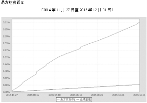 基金管理人:易方达基金管理有限公司 基金托管人:中国银行股份有限公司 报告送出日期:二〇一六年一月二十二日 §1 重要提示 基金管理人的董事会及董事保证本报告所载资料不存在虚假记载、误导性陈述或重大遗漏,并对其内容的真实性、准确性和完整性承担个别及连带责任。 基金托管人中国银行股份有限公司根据本基金合同规定,于2016年1月19日复核了本报告中的财务指标、净值表现和投资组合报告等内容,保证复核内容不存在虚假记载、误导性陈述或者重大遗漏。 基金管理人承诺以诚实信用、勤勉尽责的原则管理和运用基金资产,但不保证基金一定盈利。 基金的过往业绩并不代表其未来表现。投资有风险,投资者在作出投资决策前应仔细阅读本基金的招募说明书。 本报告中财务资料未经审计。 本报告期自2015年10月1日起至12月31日止。 §2 基金产品概况 ■ 注:1.易方达货币市场基金E类基金份额上市交易。 2.自2014年11月21日起,易方达货币市场基金增设E类份额类别,基金份额面值为100元,本表所列E类份额数据面值已折算为1元。 §3 主要财务指标和基金净值表现 3.1 主要财务指标 单位:人民币元 ■ 注:1.本期已实现收益指基金本期利息收入、投资收益、其他收入(不含公允价值变动收益)扣除相关费用后的余额,本期利润为本期已实现收益加上本期公允价值变动收益,由于本基金采用摊余成本法核算,因此,公允价值变动收益为零,本期已实现收益和本期利润的金额相等。 2.本基金自成立起至2014年11月20日,利润分配是按月结转份额;自2014年11月21日起至今,利润分配是按日结转份额。 3.根据《关于易方达货币市场基金实施基金份额分级的公告》,本基金于2006年7月18日实施分级,分级后本基金设两级基金份额:A级基金份额和B级基金份额,升级后的B级基金份额从2006年7月19日起享受B级基金收益。 4.自2014年11月21日起,本基金增设E类份额类别。 3.2 基金净值表现 3.2.1本报告期基金份额净值收益率及其与同期业绩比较基准收益率的比较 易方达货币A ■ 易方达货币B ■ 易方达货币E ■ 3.2.2自基金合同生效以来基金累计净值收益率变动及其与同期业绩比较基准收益率变动的比较 易方达货币市场基金 累计净值收益率与业绩比较基准收益率的历史走势对比图 ■ 易方达货币E ■ (2014年11月27日至2015年12月31日) 注:1.根据2008年12月25日《易方达基金管理有限公司关于变更易方达货币市场基金业绩比较基准的公告》,自2009年1月1日起,本基金原约定的业绩比较基准“一年期银行定期储蓄存款的税后利率:(1-利息税率)×一年期银行定期储蓄存款利率”,变更为:“税后活期存款利率(即活期存款利率×(1-利息税率))”。 2.自2014年11月21日起,本基金增设E类份额类别,份额申购首次确认日为2014年11月27日。 3.自基金合同生效至报告期末,A类基金份额净值收益率为40.1312%,同期业绩比较基准收益率为12.7872%;自基金分级至报告期末,B类基金份额净值收益率为38.9717%,同期业绩比较基准收益率为10.1534%;自E类基金合同生效至报告期末,E类基金份额净值收益率为3.6122%,同期业绩比较基准收益率为0.3843%。 §4 管理人报告 4.1 基金经理(或基金经理小组)简介 ■ 注:1.此处的“任职日期”和“离任日期”分别为公告确定的聘任日期和解聘日期。 2.证券从业的含义遵从行业协会《证券业从业人员资格管理办法》的相关规定。 4.2 管理人对报告期内本基金运作遵规守信情况的说明 本报告期内,本基金管理人严格遵守《证券投资基金法》等有关法律法规及基金合同、基金招募说明书等有关基金法律文件的规定,以取信于市场、取信于社会投资公众为宗旨,本着诚实信用、勤勉尽责的原则管理和运用基金资产,在控制风险的前提下,为基金份额持有人谋求最大利益。在本报告期内,基金运作合法合规,无损害基金份额持有人利益的行为。 4.3 公平交易专项说明 4.3.1公平交易制度的执行情况 本基金管理人主要通过建立有纪律、规范化的投资研究和决策流程、交易流程,以及强化事后监控分析来确保公平对待不同投资组合,切实防范利益输送。本基金管理人规定了严格的投资权限管理制度、投资备选库管理制度和集中交易制度等,并重视交易执行环节的公平交易措施,以“时间优先、价格优先”作为执行指令的基本原则,通过投资交易系统中的公平交易模块,以尽可能确保公平对待各投资组合。本报告期内,公平交易制度总体执行情况良好。 4.3.2异常交易行为的专项说明 本报告期内,公司旗下所有投资组合参与的交易所公开竞价交易中,同日反向交易成交较少的单边交易量超过该证券当日成交量的5%的交易共有6次,其中5次为指数及量化组合因投资策略需要和其他组合发生的反向交易;1次为不同基金经理管理的基金因投资策略不同而发生的反向交易,有关基金经理按规定履行了审批程序。 本报告期内,未发现本基金有可能导致不公平交易和利益输送的异常交易。 4.4 报告期内基金的投资策略和业绩表现说明 4.4.1报告期内基金投资策略和运作分析 2015年四季度,国内经济增速企稳。11月工业生产增速有所回升,零售数据也表现出企稳的态势,11月零售总额同比增长11.2%,月度环比由12.1%大幅上升至14.4%,季度环比由12.2%上升至12.4%。投资数据也企稳,11月投资单月同比由9.5%升至10.2%,月度环比由64%降至25.2%,季度环比由