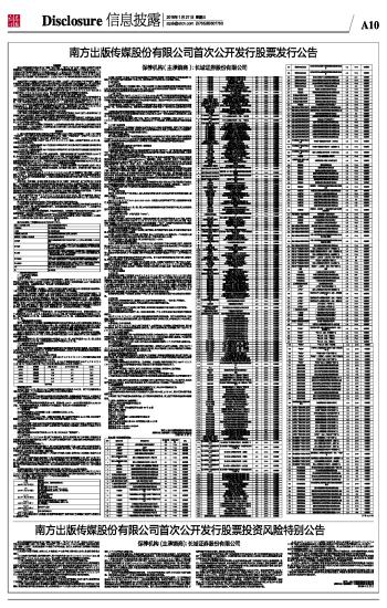 南方出版传媒股份有限公司首次公开发行股票投资风险特别公告 2016-01-27 来源:证券时报网 作者: