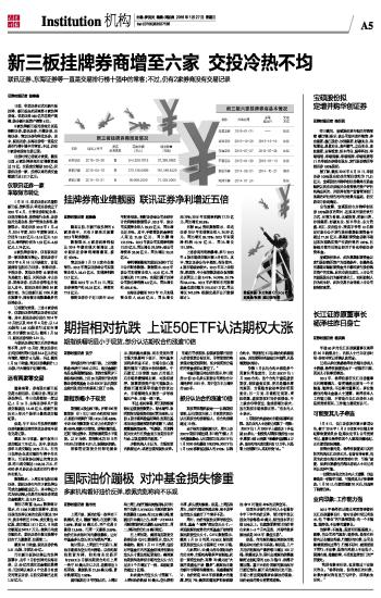 挂牌券商业绩靓丽 联讯证券净利增近五倍