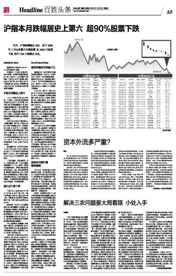 沪指本月跌幅居史上第六 超90%股票下跌 2016-01-30 来源:证券时报网 作者:郑灶金