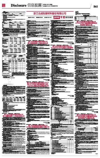 浙江众成包装材料股份有限公司2015年度报告摘要 2016-02-02 来源:证券时报网 作者:
