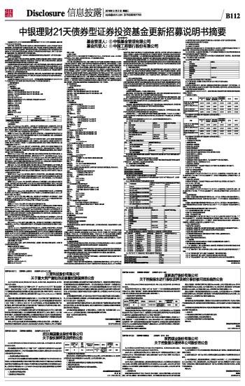 中银理财21天债券型证券投资基金更新招募说明书摘要(2016年第1号) 2016-02-02 来源:证券时报网 作者: