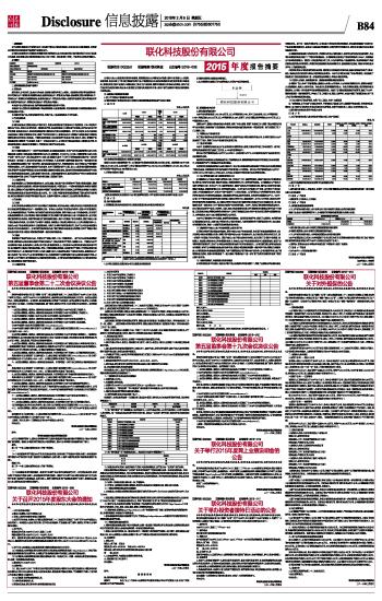 联化科技股份有限公司2015年度报告摘要 2016-02-05 来源:证券时报网 作者: