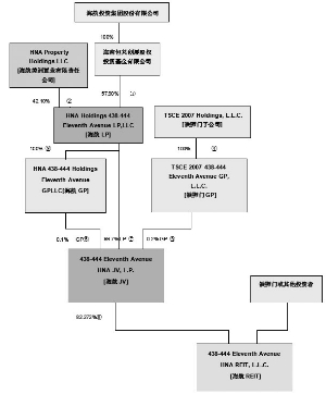 证券代码:000616 证券简称:海航投资 公告编号:2016-006 海航投资集团股份有限公司 对外投资公告 本公司及董事会全体成员保证信息披露的内容真实、准确、完整,没有虚假记载、误导性陈述或重大遗漏。 2016年2月4日,公司第七届董事会第十二次会议审议通过了《关于与海航美洲置业有限责任公司共同向铁狮门基金发起的项目投资的议案》。现将有关投资情况公告如下: 一、对外投资交易架构概述 海航投资集团股份有限公司(以下简称“公司”、“海航投资”)设立的全资子公司海南恒兴创展股权投资基金有限公司(以下简称“恒兴创展”)拟与海航美洲置业有限责任公司 (英文名称为:“HNA Property Holdings LLC”,以下简称“美洲置业”)共同注资270,399,180.70美元于在美国设立的公司“HNA Holdings 438-444 Eleventh Avenue LP LLC”(以下简称“海航LP”),美洲置业出资113,838,055.07美元占有股份42.1%(如②所示),恒兴创展出资156,561,125.63美元占有股份57.9%(如①所示)。“海航LP”成立全资子公司“HNA Holdings 438-444 Eleventh Avenue GP, LLC”(以下简称“海航GP”)(如③所示);与此同时,铁狮门子公司TSCE 2007 Holdings, L.L.C.100%出资成立“TSCE 2007 438-444 Eleventh Avenue GP, L.L.C.”(以下简称“铁狮门GP”)(如④所示)。“海航LP”作为有限合伙人,“海航GP”和“铁狮门GP”作为普通合伙人,共同出资270,941,062.83美元设立合伙企业“438-444 Eleventh Avenue HNA JV, L.P.”(以下简称“海航JV”),其中,“海航LP”出资99.7%(如⑦所示),“海航GP”出资0.1%(如⑥所示),“铁狮门GP”出资0.2%(如⑤所示)。“海航JV”进一步以LP的身份投资于438-444 Eleventh Avenue HNA REIT, L.L.C. (以下简称“海航REIT”),其在海航REIT总份额中占比82.272%(如⑧所示),海航REIT将投资于纽约438 Eleventh Avenue项目JV公司。在整个交易架构中,海航投资及其关联方美洲置业所占本阶段投资总金额338,000,000.00美元中的80%比例。 交易架构图如下所示: ■ 其中,海航实业集团有限公司为恒兴创展就该项交易提供担保。 二、交易相关各方介绍 ㈠ 海航投资境内投资主体SPV——海南恒兴创展股权投资基金有限公司 公司名称:海南恒兴创展股权投资基金有限公司 成立日期:2016年2月1日 营业期限:2016年2月1日至长期 注册资本:10,000万元人民币 公司类型:有限责任公司(法人独资) 注册地址:海南省海口市国兴大道7号新海航大厦22层西区 法定代表人:戴美欧 经营范围:从事对未上市企业的投资及对上市公司非公开发行股票的投资。(一般经营项目自主经营,许可经营项目凭相关许可证或者批准文件经营)(依法须经批准的项目,经相关部门批准后方可开展经营活动。) 股权结构:海航投资集团股份有限公司100%持股。 ㈡ 共同投资关联方——海航美洲置业有限责任公司 美洲置业成立于2010年12月13日,是一家于美国东部特拉华州注册成立的公司,主要在美国本土经营房地产业务,其股权结构图如下: ■ 美洲置业实际控制人为海南省慈航公益基金会,与公司海航投资为同一实际控制人,因此本次对外投资构成关联方共同投资。截止目前的过去12个月,公司未曾与美洲置业发生过交易。 ㈢ 海航投资境外投资主体——HNA Holdings 438-444 Eleventh Avenue LP LLC(海航LP) 该公司于2016年1月25日设立,目前的单一股东为美洲置业。待本次对外投资事项通过股东大会审议并生效后,双方进一步对其注资,该主体股权结构将变更为:美洲置业占比42.10%;恒兴创展占比57.90%。 ㈣ 交易对手——铁狮门公司 铁狮门公司(英文名称:“Tishman Speyer”)为全球领先的房地产开发商、地产业主、运营商及基金管理公司。公司业务范围遍及北美、欧洲、南美和亚洲。铁狮门公司受到世界最负盛名的公司的信赖并满足其对办公空间的需求。铁狮门公司已经收购、开发和运营约14,010万平方英尺的资产,价值约合美金761亿,涉及资产380处,投资276项。铁狮门旗下的标志性建筑包括:纽约的洛克菲勒中心、克莱斯勒中心、巴西圣保罗的北方大厦、上海的上浦领世和法兰克福的歌剧大楼。铁狮门目前在亚特兰大、波士顿、巴西利亚、成都、法兰克福、古尔冈、海德拉巴、洛杉矶、纽约、巴黎、里约热内卢、旧金山、圣保罗、上海、苏州和华盛顿D.C.均有处于不同阶段的项目。 本次项目交易对手为铁狮门公司指定主体,如前文及交易框架图所示TSCE 2007 438-444Eleventh Avenue GP,L.L.C.(铁狮门GP)及其指定的相关主体等公司。 三、投资标的基本情况 本次项目投资通过如前文交易架构图所示层层架构,通过海航REIT投资于纽约438 Eleventh Avenue项目JV公司,项目基本情况如下: 本项目将被开发的地点位于曼哈顿最西侧快速发展的哈德逊商圈中两个相邻地块。共占地面积48,216平方尺,南北在第36街和第37街之间,东西分别为第11大道和规划中的哈德逊大道西侧,将在该位置上建立其最先进的、A级商务写字楼,可出租面积大约为130万平方英尺(以下简称“项目”)。项目所处的地点距离新的地铁站只有一个街区,该地铁站将直接通向时报广场、中央车站以及众多其他连接曼哈顿和其他各处的地铁线路。 项目初期将在开发前阶段完成两个地块的购买、对写字楼建筑设计和营销、锁定预租办公室租户和购买额外的开发权。额外的资本以及债务融资预计将在施工建设之前获得,施工建设预计在2019年底开始并在2022年完成。 除了其地处活跃的哈德逊商圈具有优越的地理位