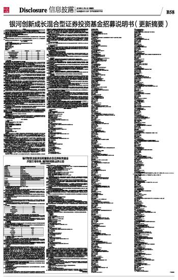 银河创新成长混合型证券投资基金招募说明书(更新摘要) 2016-02-05 来源:证券时报网 作者: