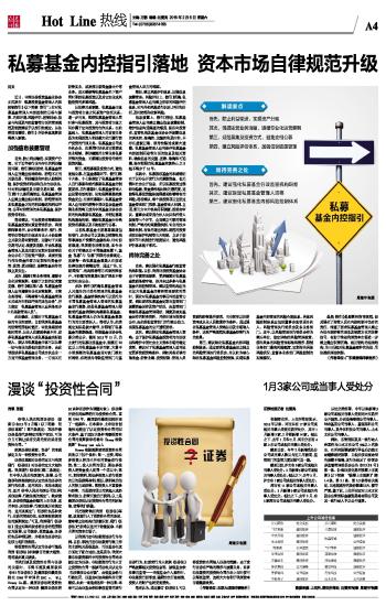 私募基金内控指引落地 资本市场自律规范升级 2016-02-06 来源:证券时报网 作者:刘文