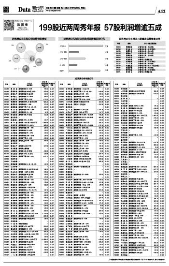 199股近两周秀年报 57股利润增逾五成